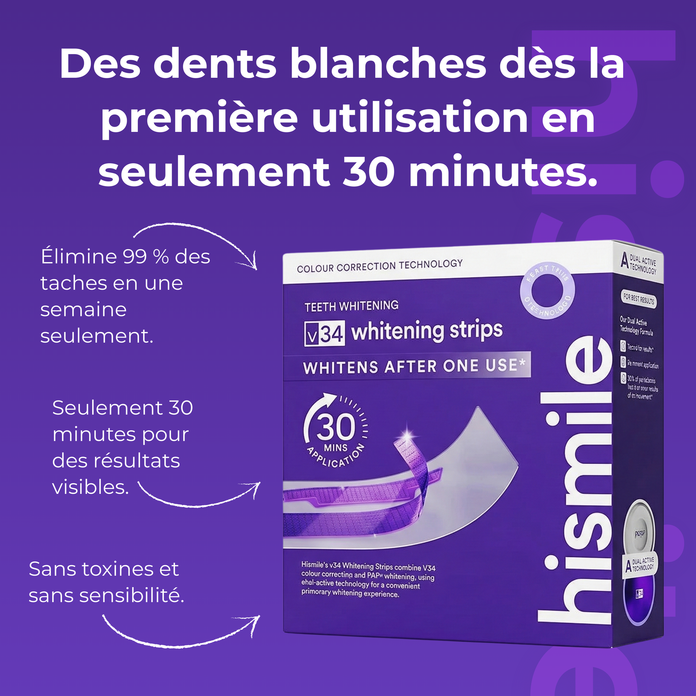Après 30 minutes de pose, le sourire paraît plus clair. Les résultats peuvent s’intensifier avec une utilisation régulière, selon les besoins.